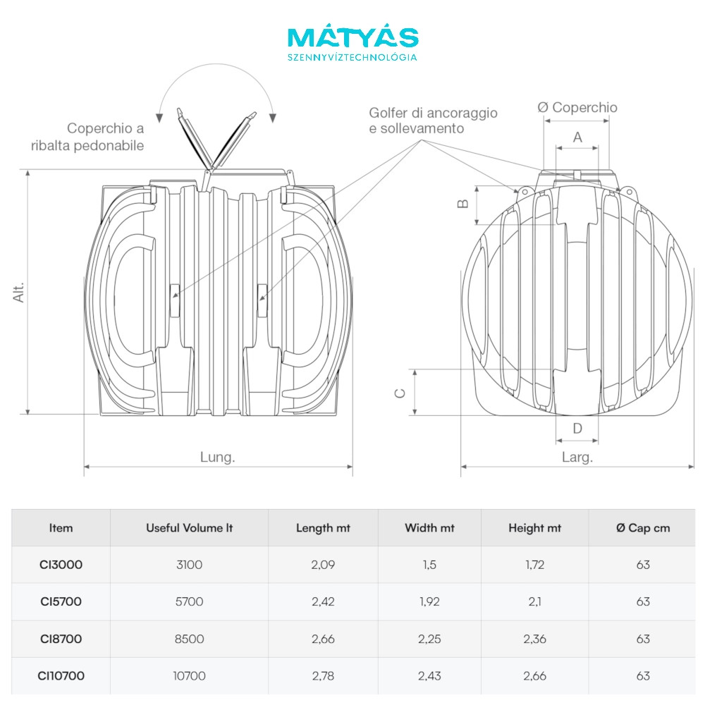 A ciszterna egy polietilénből készült, monoblokk szerkezetű tartály, amelyet különféle folyadékok, például ivóvíz, esővíz, olaj vagy szennyvíz tárolására használhatsz. Különböző kapacitásokkal érhető el külső (300-5000 liter) és földalatti (3100-10700 liter) kivitelben, mindegyik típus képes ellenállni a külső hőmérséklet-ingadozásnak, UV-sugárzásnak és vegyszereknek