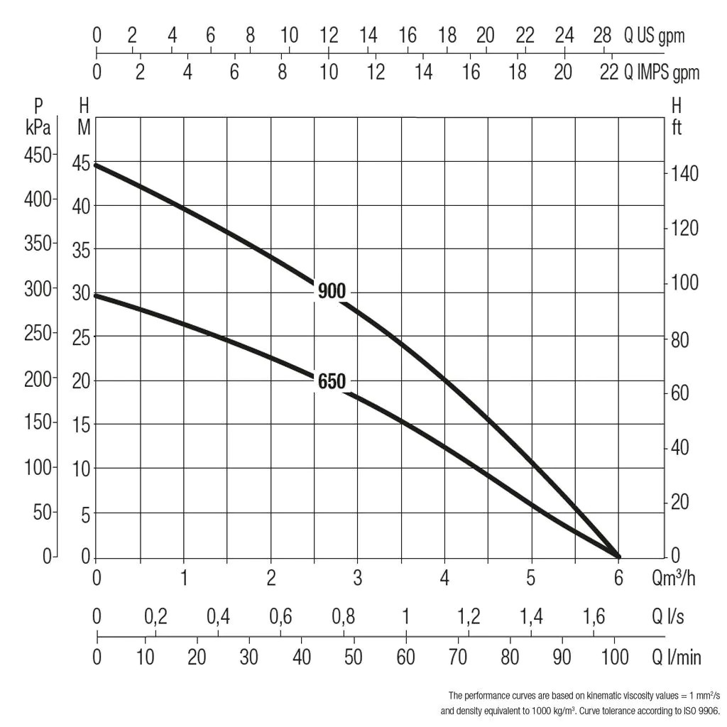 Szívómagasság: 45 m (900-as változat), 30 m (650-es változat)