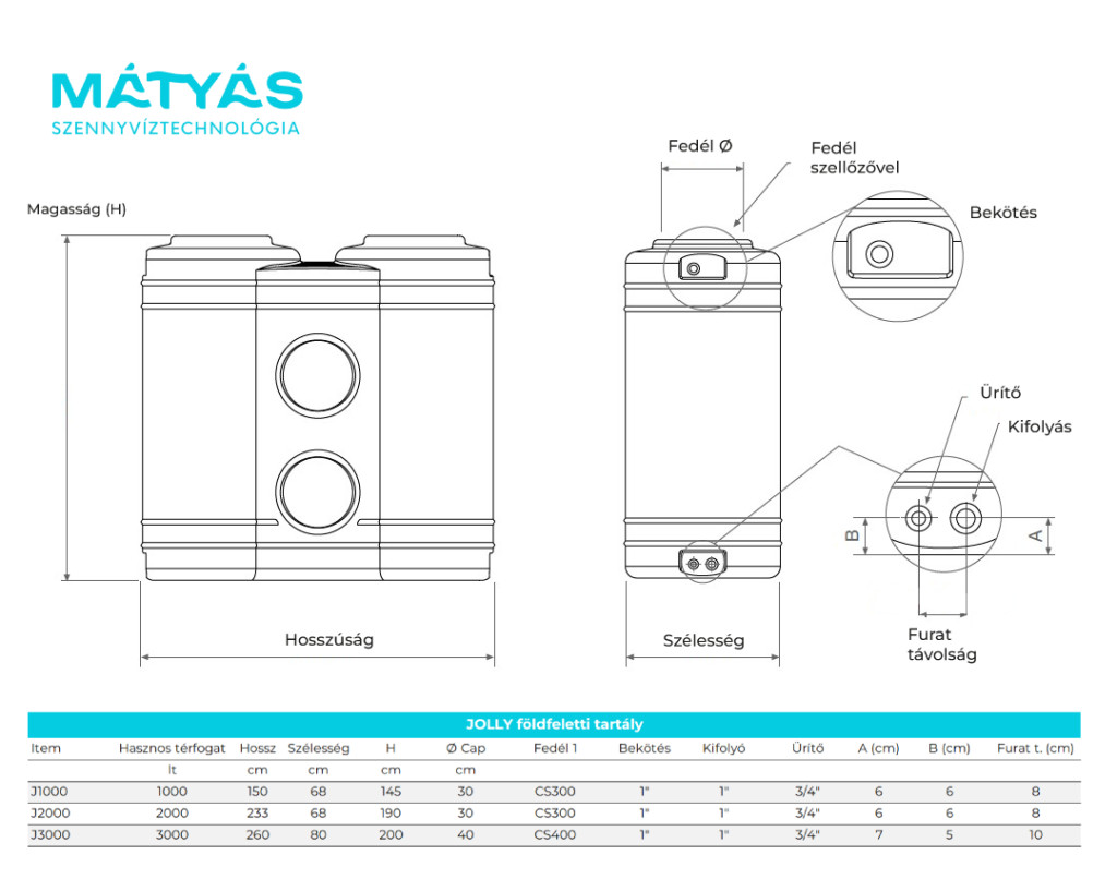 A Jolly sorozat földfeletti, egyrészes polietilén tartályokat tartalmaz,
