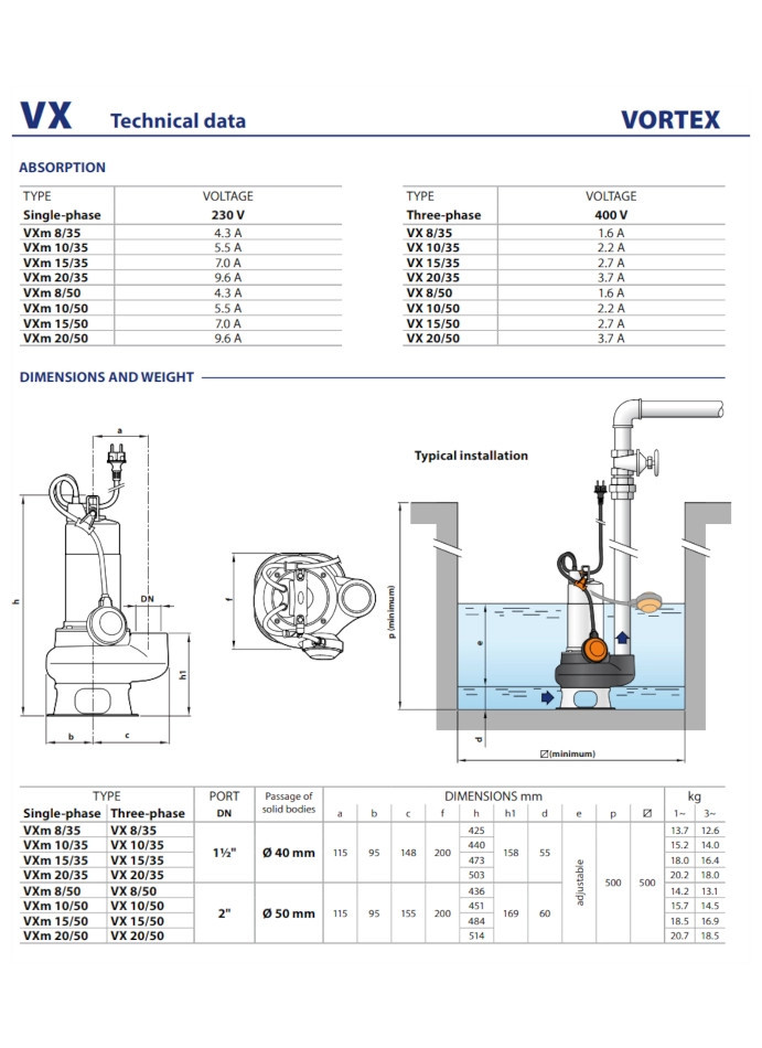 ? A VORTEX járókerék akár 50 mm átmérőjű szilárd anyagokat is képes kezelni. Egyedi kialakítása biztonságos működést biztosít az eltömődés ellen, így a szivattyú folyamatos, megbízható üzemet garantál még nehéz körülmények között is.