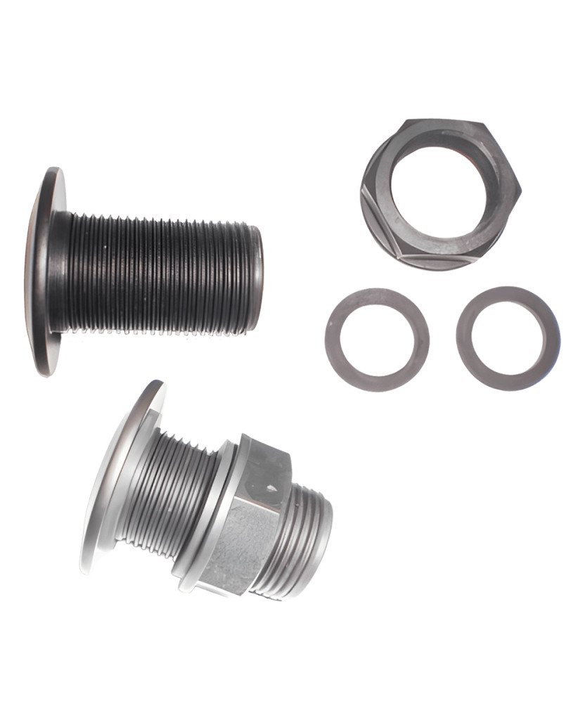 Menetes polipropilén válaszfalcsatlakozó rögzítőanyával, csavarral és EPDM tömítésekkel, tartályok csapokhoz, öntöző- és szivattyúrendszerekhez való csatlakoztatásához, vagy több tartály összekapcsolásához a dedikált rögzítőlapok segítségével.