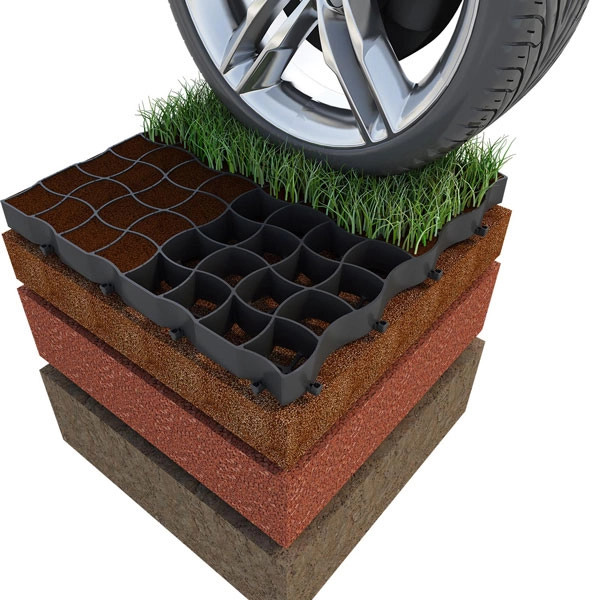 A cellás kialakítás elősegíti az egyenletes fűnövekedést és óvja a gyökérzetet, így a burkolat gyalogosan és járművel is jól járható marad.