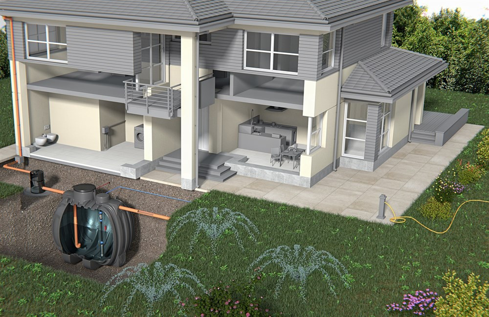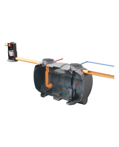 A csapadékvíz a tetőkről vagy más felületekről a szűrőrendszeren keresztül a tartályba kerül. Ha a tartály megtelik, a túlfolyó vezeti el a felesleget. A beépített merülő szivattyú és az elektronikus nyomáskapcsoló lehetővé teszi a tárolt víz folyamatos vagy igény szerinti átjuttatását az öntözőrendszerekhez vagy egyéb felhasználási pontokhoz. :contentReference[oaicite:1]{index=1}