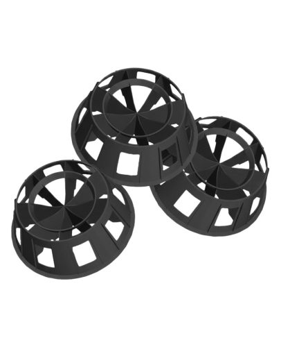 A BIOWE120 felületnövelő töltet közepes terhelésű perkolációs szűrők számára készült, lebegőágy, amely elősegíti a biomassza megtapadását és a szennyvíz áthaladását. 120 m²/m³ fajlagos felülettel és kb. 95%-os üregességgel rendelkezik, fekete izotaktikus polipropilén anyagból készül, Ø 200 mm átmérőjű és 50 mm magas kör alakú elemekből áll.