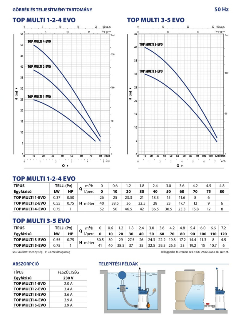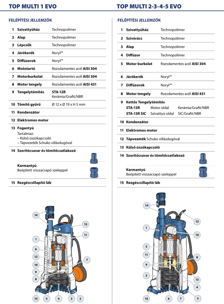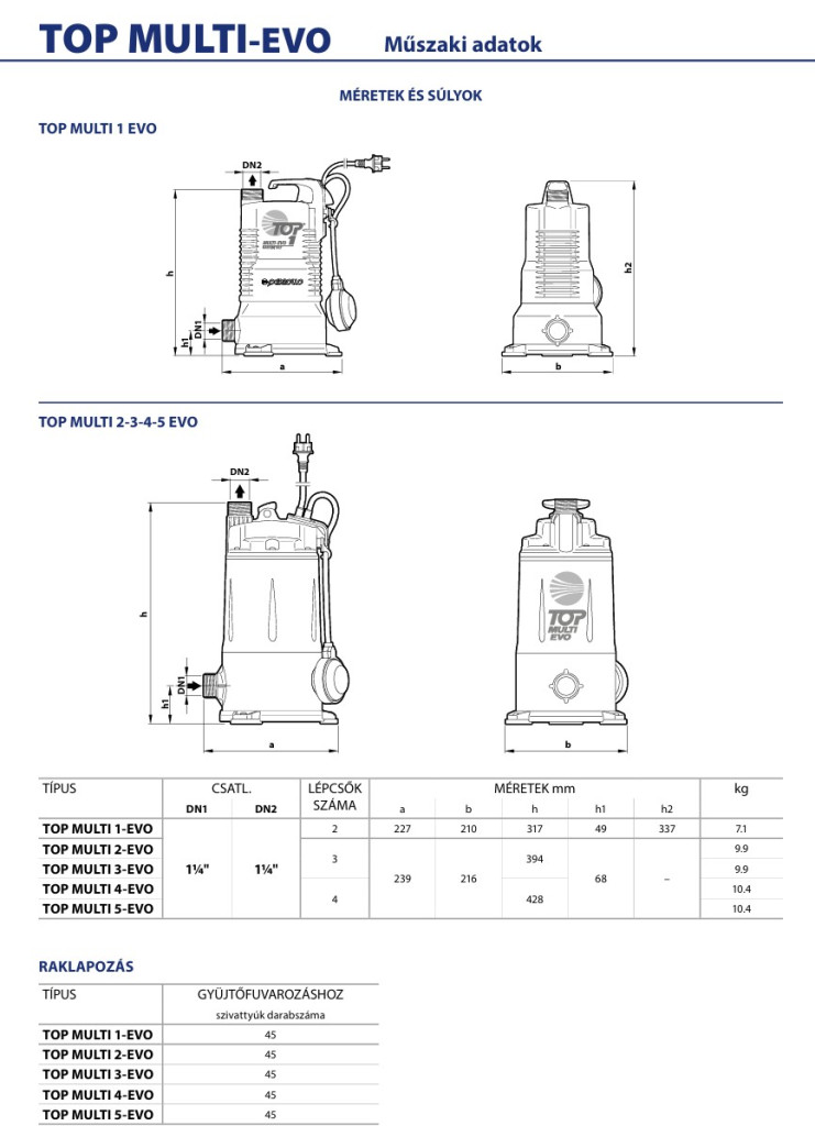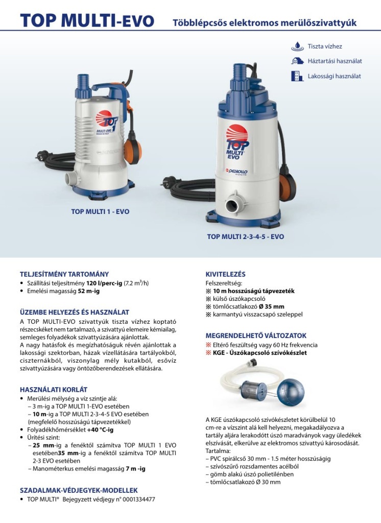 TOP MULTI 1-EVO többfokozatú elektromos merülőszivattyú