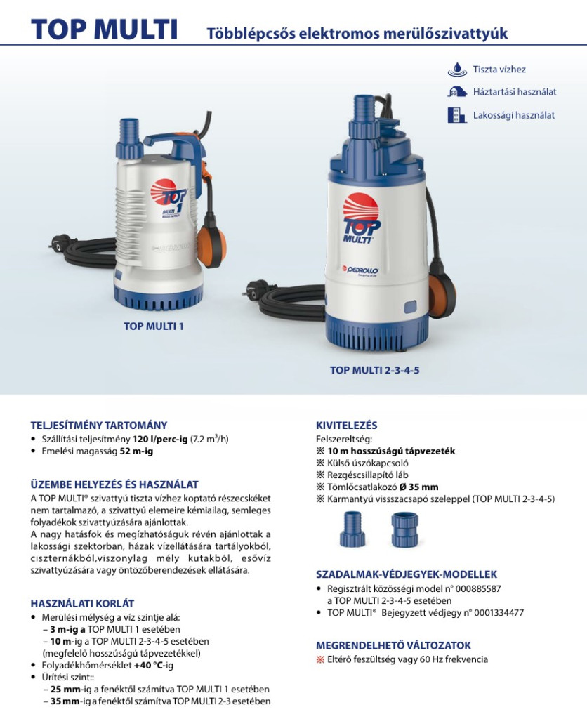 TOP MULTI 1 többfokozatú elektromos merülőszivattyú