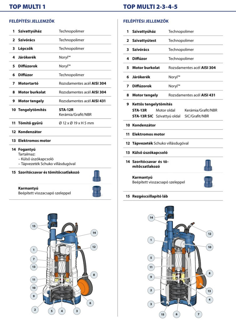 A TOP MULTI szivattyúk különböző kivitelben érhetők el,