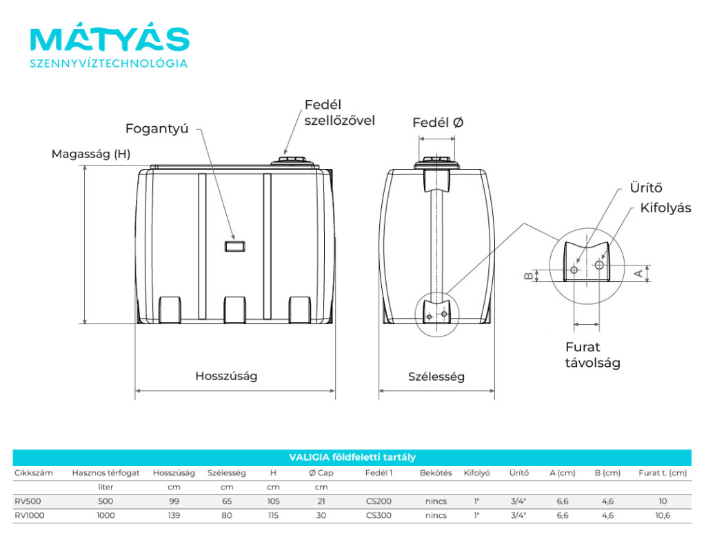 Valigia föld feletti tartály 500 literes méretben