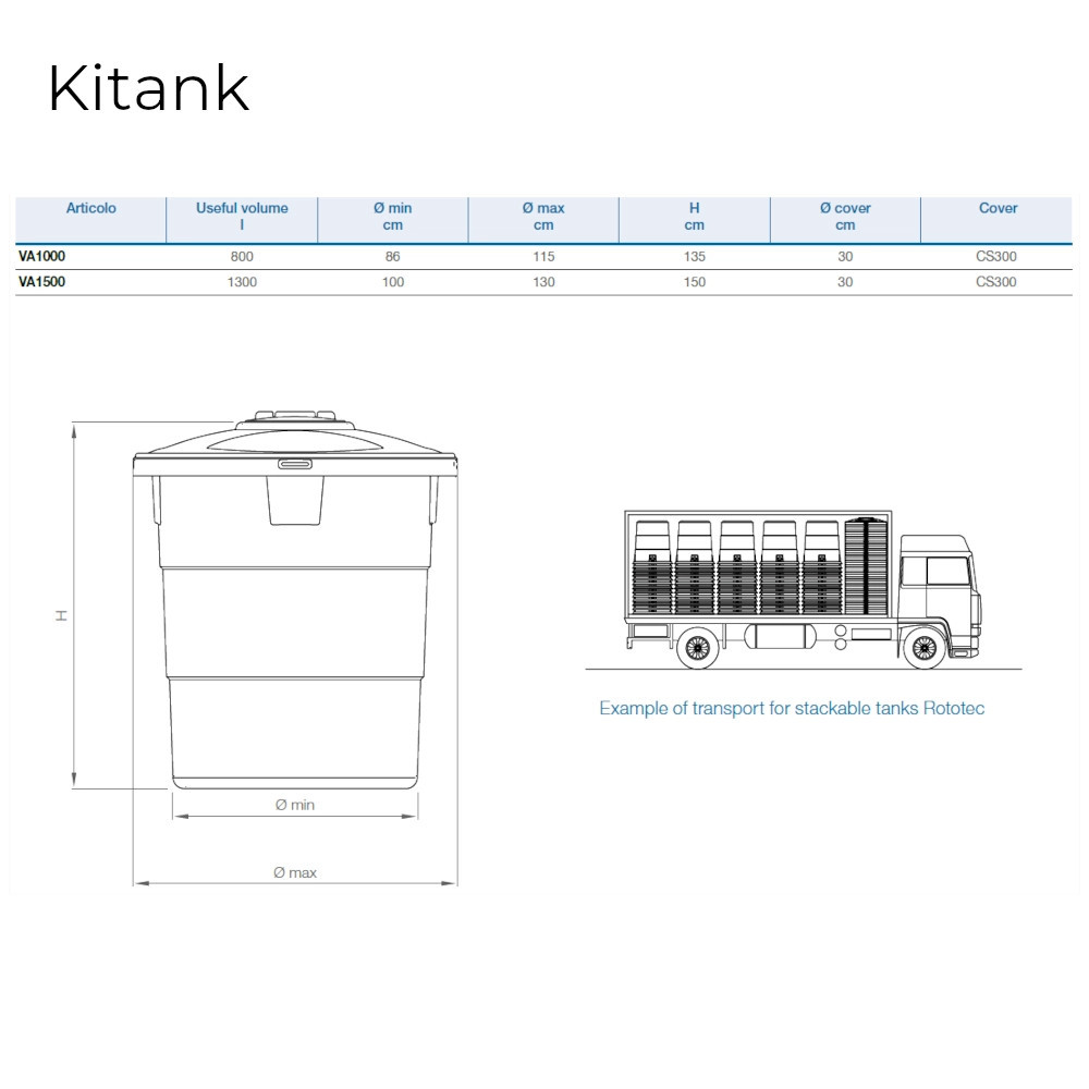 KITank sorozat földfeletti, LLDPE polietilén tartályokat tartalmaz, amelyek kültéri telepítésre és sokoldalú felhasználásra készülnek. A két részből (alsó rész és fedél) álló kivitel lehetővé teszi, hogy a tartály munkatérfogata a szállítás és tárolás során minimálisra csökkenjen, így csökkentve a helyigényt és a szállítási költségeket.